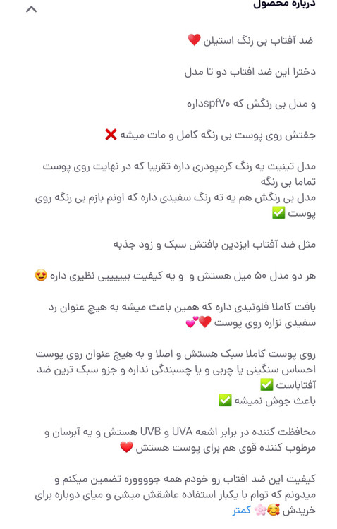 ویژگی: ضدافتاب محافظت بالا_ اس پی اف ۷۰ _کیفیت عالی
