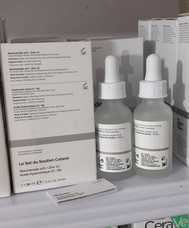 سرم نیاسینامید و سرم هیالورونیک اوردینری در پک 2 عددی شناسنامه دار و دولیبل اصلی حجم هرکدام 30 میل ساخت کشور کانادا