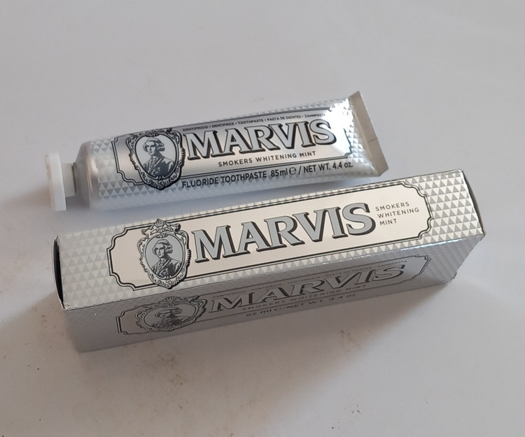 خمیر دندان سفید کننده مارویس Marvis اصل حجم 85 میلی لیتر، یک خمیر دندان روزانه با مواد مینرال و بر پایه فلوراید مینای دندان را دوباره تقویت کرده و در برابر پوسیدگی محافظت می کند. این خمیردندان با هیدروکسید آلومینیوم و دی اکسید سیلیکون فرمول شده، که تمیز کردن کامل و ایمن را انجام می دهند. به دلیل خاصیت سفید کنندگی برای افراد سیگاری و قهوه دوست مناسب هستند و ذره ای به مینای دندان یا لثه آسیب نمیزنند. برای استفاده روزانه توصیه می شوند.