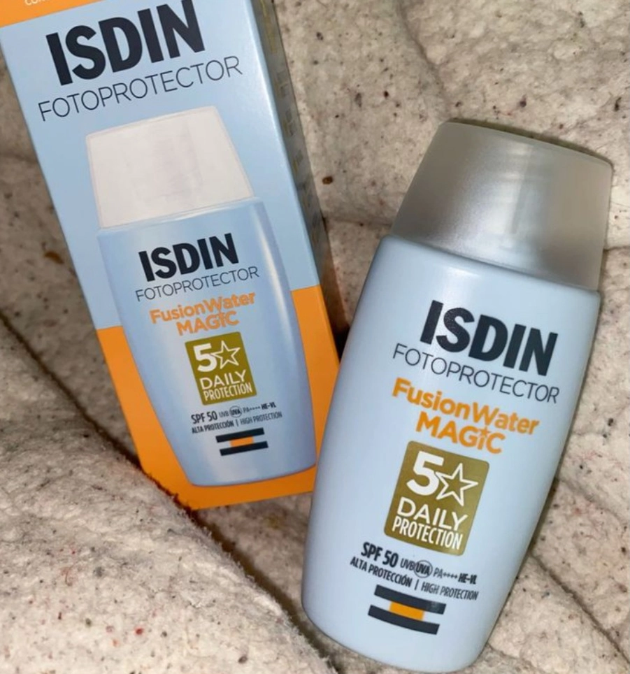 ضدآفتاب فیوژن واتر مجیک ایزدین یکی از انواع ضد آفتاب های برند ایزدین است که بافتی فوق العاده سبک و زود جذب روی پوست داشته و برای استفاده روزانه ایده آل است. این ضد آفتاب علاوه بر محافظت بالا از پوست در برابر اشعه های مضر نور خورشید با SPF50، پوست را رطوبت رسانی کرده، چربی آن را کنترل میکند و دارای خاصیت آنتی اکسیدانی است. ضد افتاب ایزدین مجیک برای پوستهای چرب ایده آل است، فاقد روغنهای معدنی است، جلوهای کاملا مات روی پوست دارد و احساس چربی و سنگینی ایجاد نمیکند.